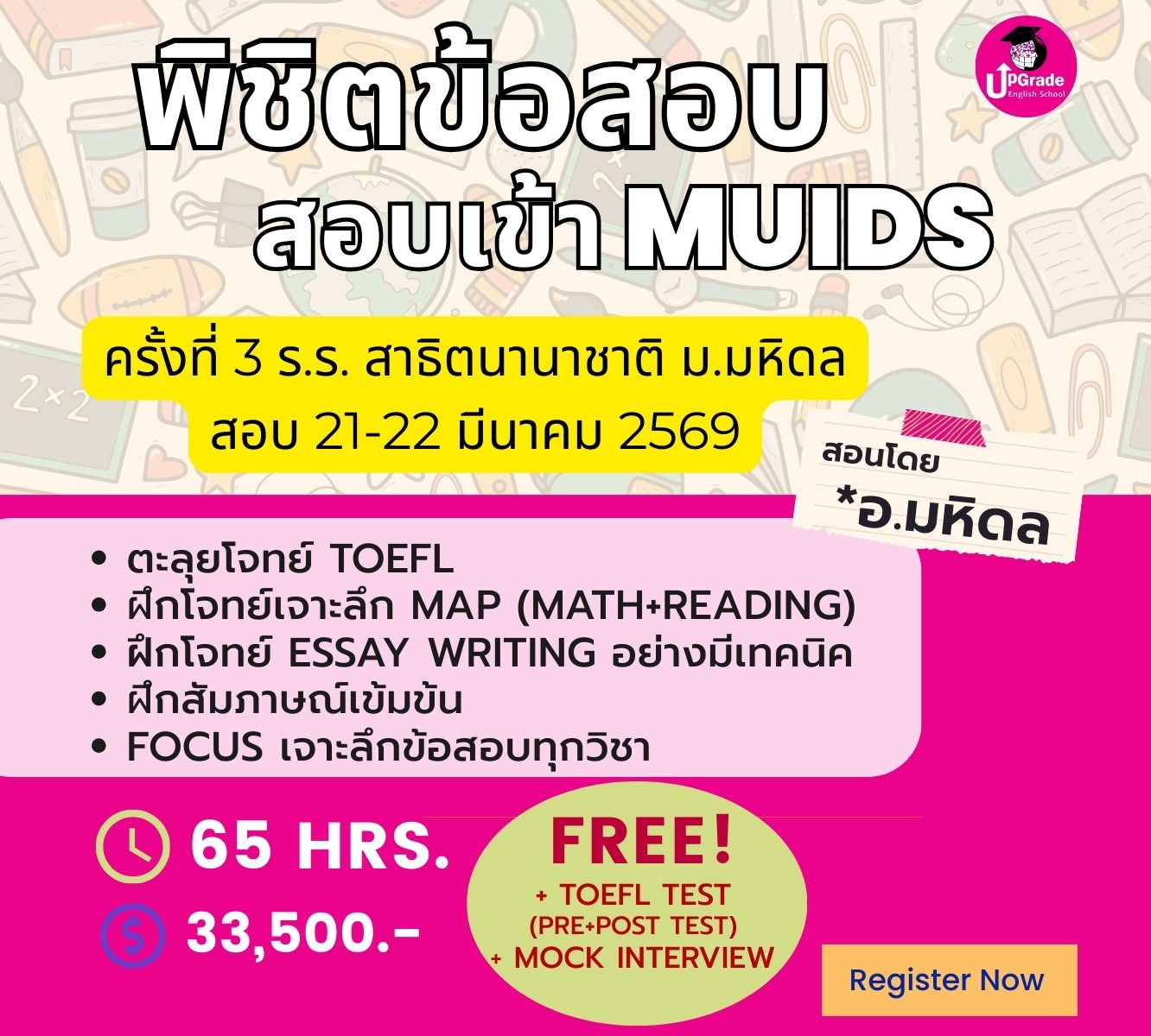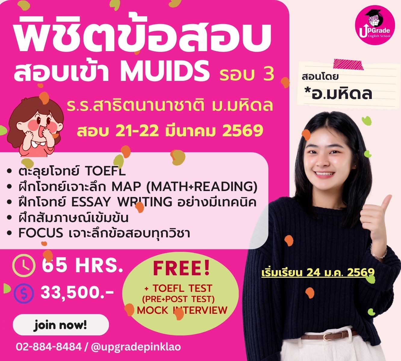 MUIDS (Mahidol University International Demonstration School) หรือ โรงเรียนสาธิตนานาชาติมหาวิทยาลัยมหิดล ได้รับการจัดตั้งขึ้นในปี 2556 สำหรับนักเรียนชั้นมัธยมศึกษาปีที่ 4 – 6 ภายใต้การกำกับดูแลของมหาวิทยาลัยมหิดล หลักสูตรการศึกษาได้อิงตามมาตรฐานเนื้อหาของโรงเรียนรัฐแคลิฟอร์เนีย ได้รับการรับรองจาก Western Association of Schools and Colleges (WASC) ซึ่งได้รับการยอมรับจากกระทรวงศึกษาธิการของสหรัฐอเมริกา และมาตรฐานเนื้อหาการศึกษาขั้นพื้นฐานของกระทรวงศึกษาธิการไทย พร้อมด้วยมาตรฐานเนื้อหาภาษาไทยและวัฒนธรรมไทยสำหรับโรงเรียนนานาชาติจากสำนักงานคณะกรรมการส่งเสริมการศึกษาเอกชน