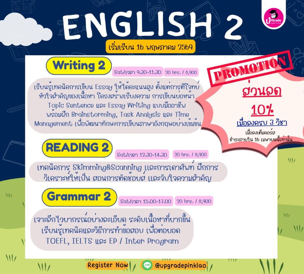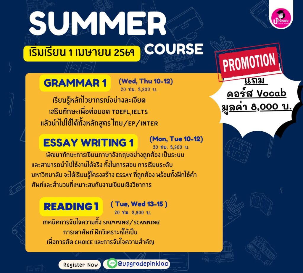 #Grammar #Reading #Listening #Speaking #Writing #MUIDS #MUIC #ChulaInter #CU #TU #Inter #upgradepinklao #TOEFL #IELTS #SAT #GED #IGCSE #TOEIC #PTE #Duolingo #EnglishCourse #ติวภาษาอังกฤษ #อินเตอร์ #สอบเข้าMUIDS #สาธิตนานาชาติมหิดล #ติวเข้าMUIDS